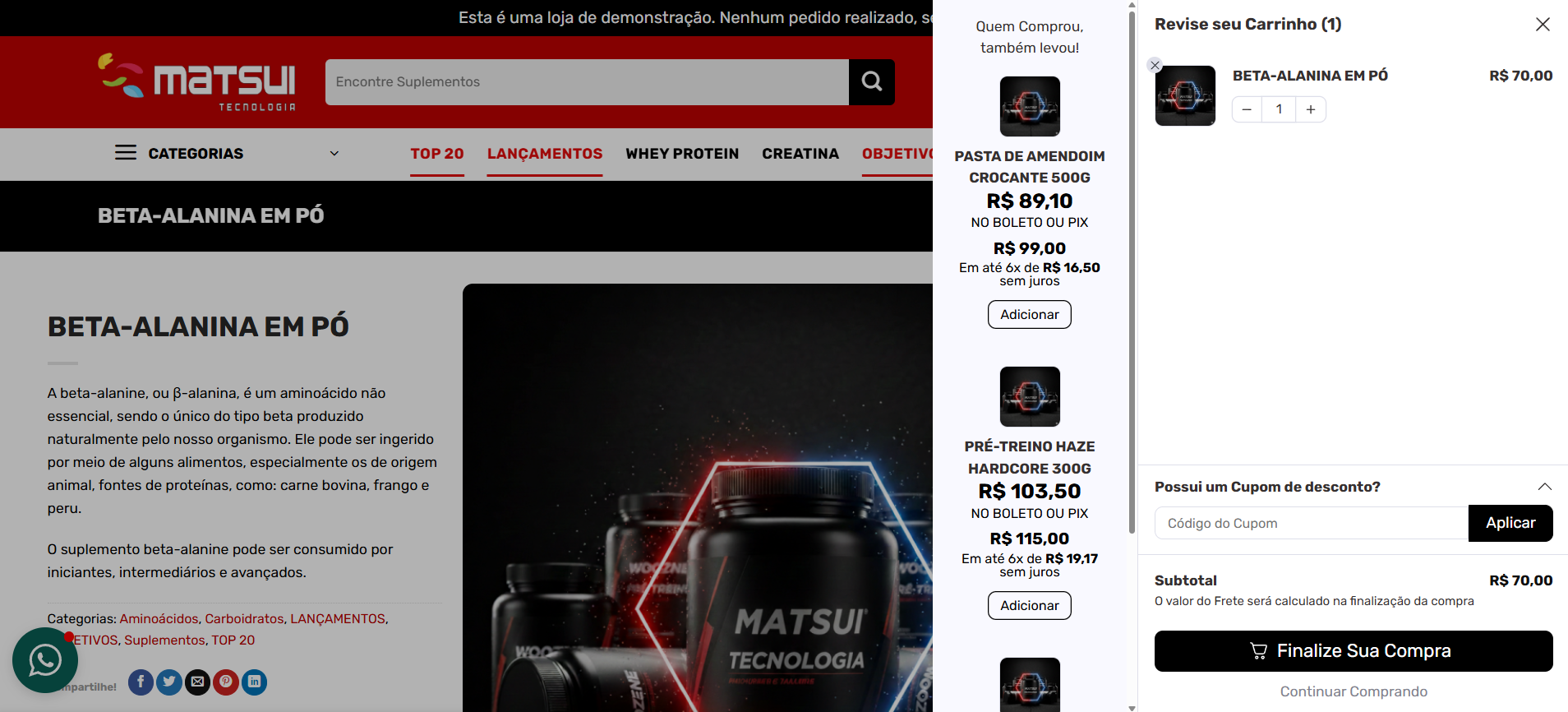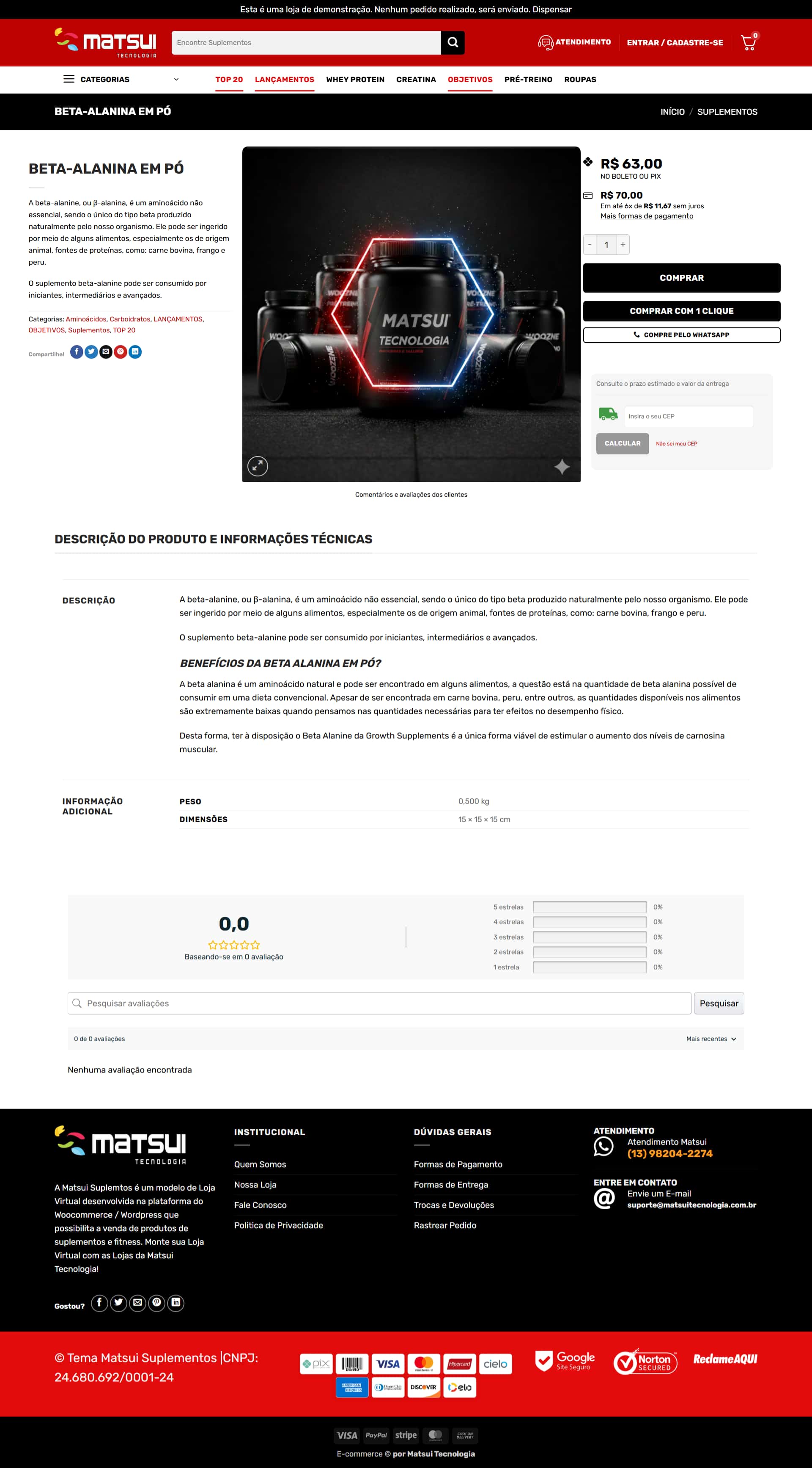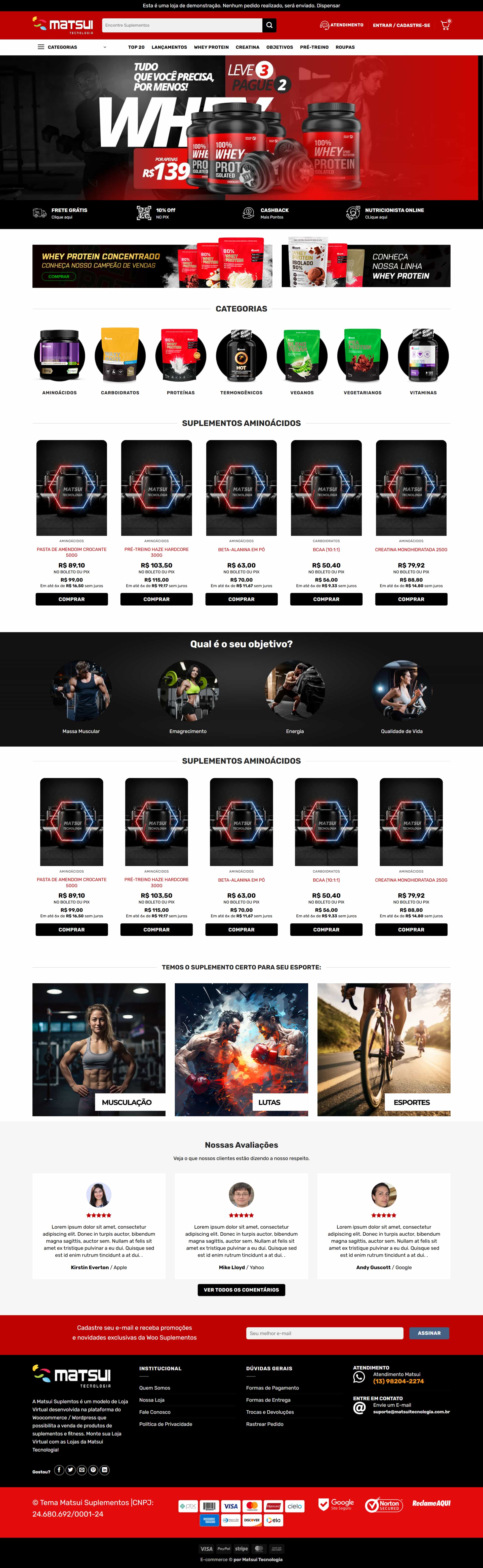 Não perca tempo e aproveite as vantagens da Matsui Tecnologia e do nosso tema especializado para criar sua loja virtual de sucesso. Com uma plataforma robusta, flexível e fácil de usar, você poderá alcançar um público mais amplo, aumentar suas vendas e construir uma marca forte no mercado de suplementos e vitaminas.